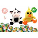 lot 1 vache + 1 poussin garnis de 15 oeufs 10g fourrés crème noisette