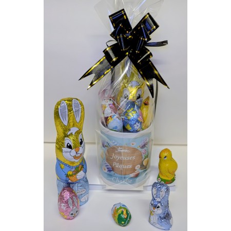 Soyez original en offrant un mug Pâques et/ou Anniversaire au prénom de votre choix vendu vide ou garni en prêt à offrir.